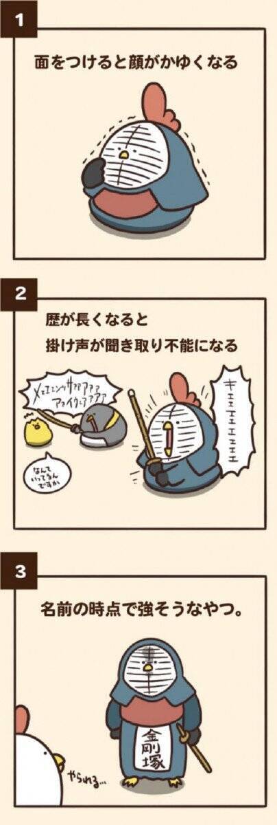 ゆるいにわとりとひよこの剣道のイラスト素材
